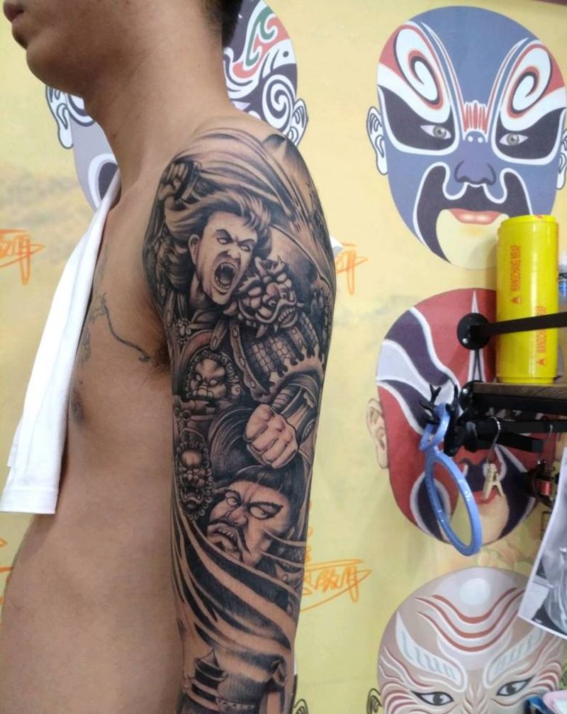 当前位置: 首页 >广东省佛山市纹身店-乐意纹身纹身图案>上将花臂纹身图片_手臂手部新传统武将纹身图案