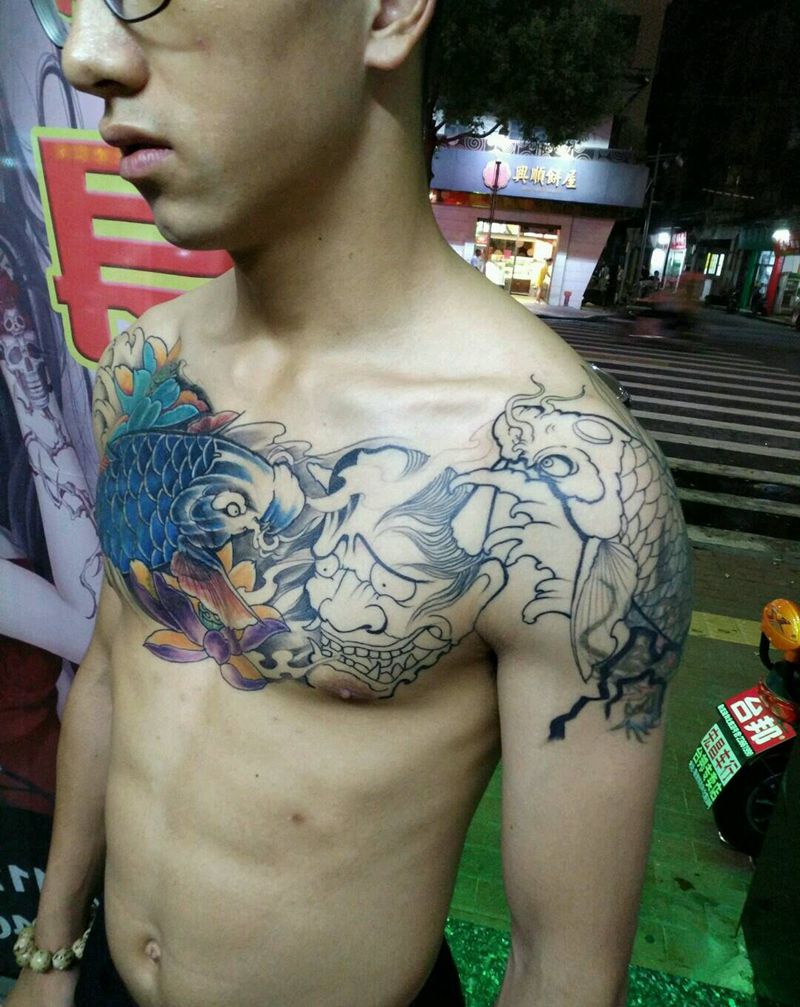 鲤鱼般若 遮盖纹身图片_颈部肩部胸部手臂手部传统国画动物鬼神纹身图案