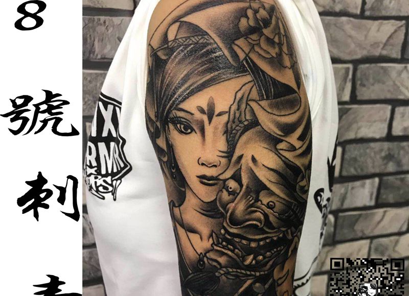 般若艺伎遮盖纹身图片_手臂手部新传统纹身图案