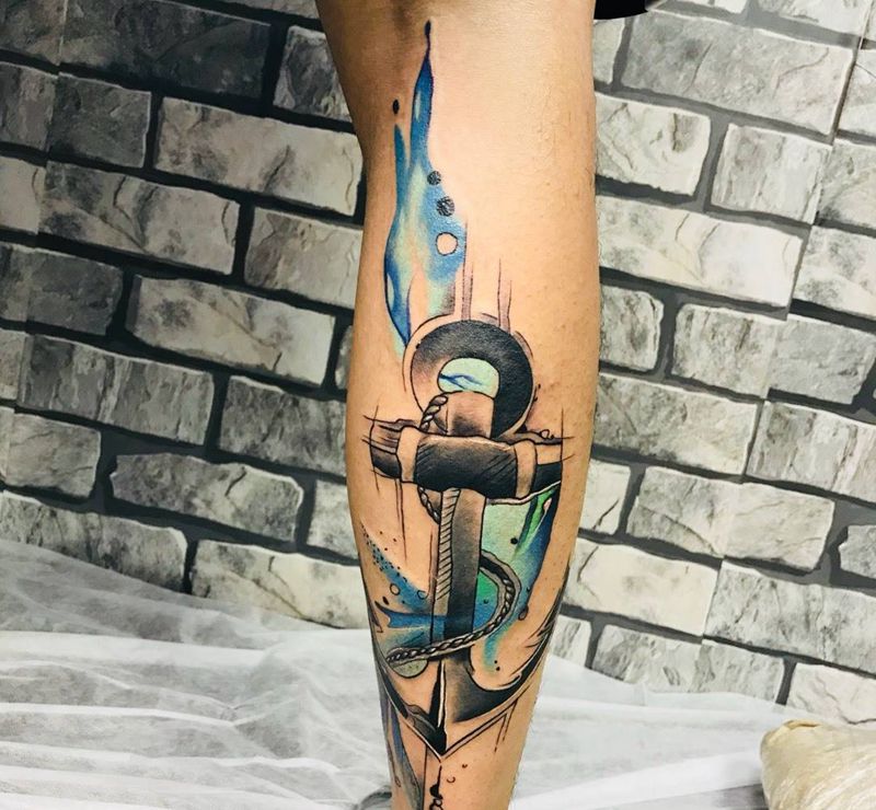 • T包小腿吹火男+阿多福纹身图片_腿部老传统新传统吹火男阿