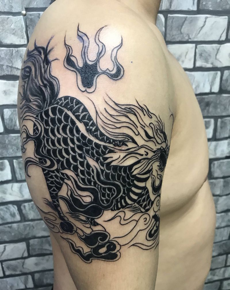 • T云龙九郎纹身图片_背部老传统云龙九郎纹身图案