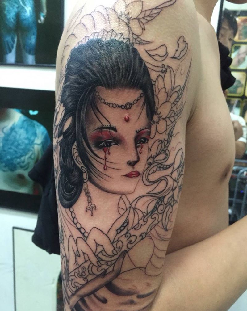 当前位置: 首页 >广东省江门市纹身店-8号纹身纹身图案>艺妓未完成纹身图片