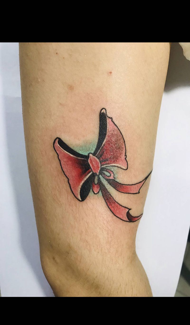 当前位置: 首页 >广东省江门市纹身店-8号纹身纹身图案>蝴蝶结遮盖纹身图片_手臂纹身图案