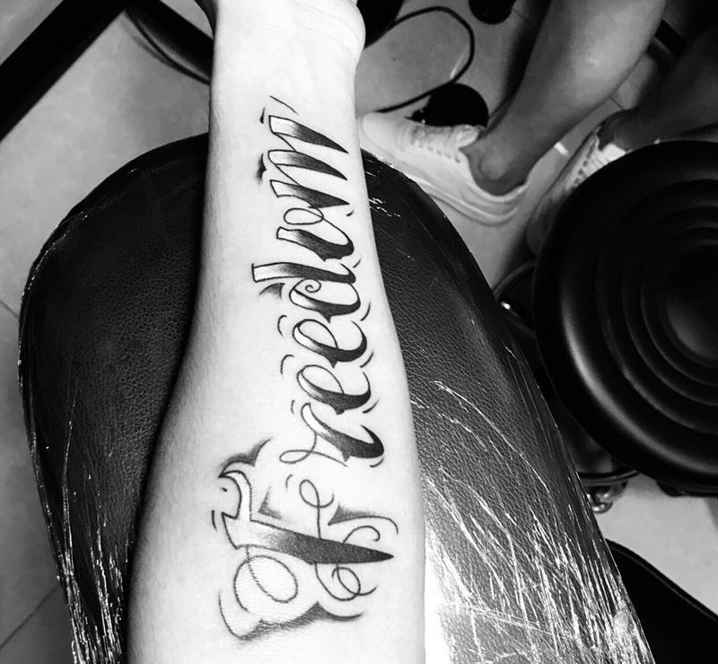 当前位置: 首页 >广东省江门市纹身店-8号纹身纹身图案>花体英文纹身图片