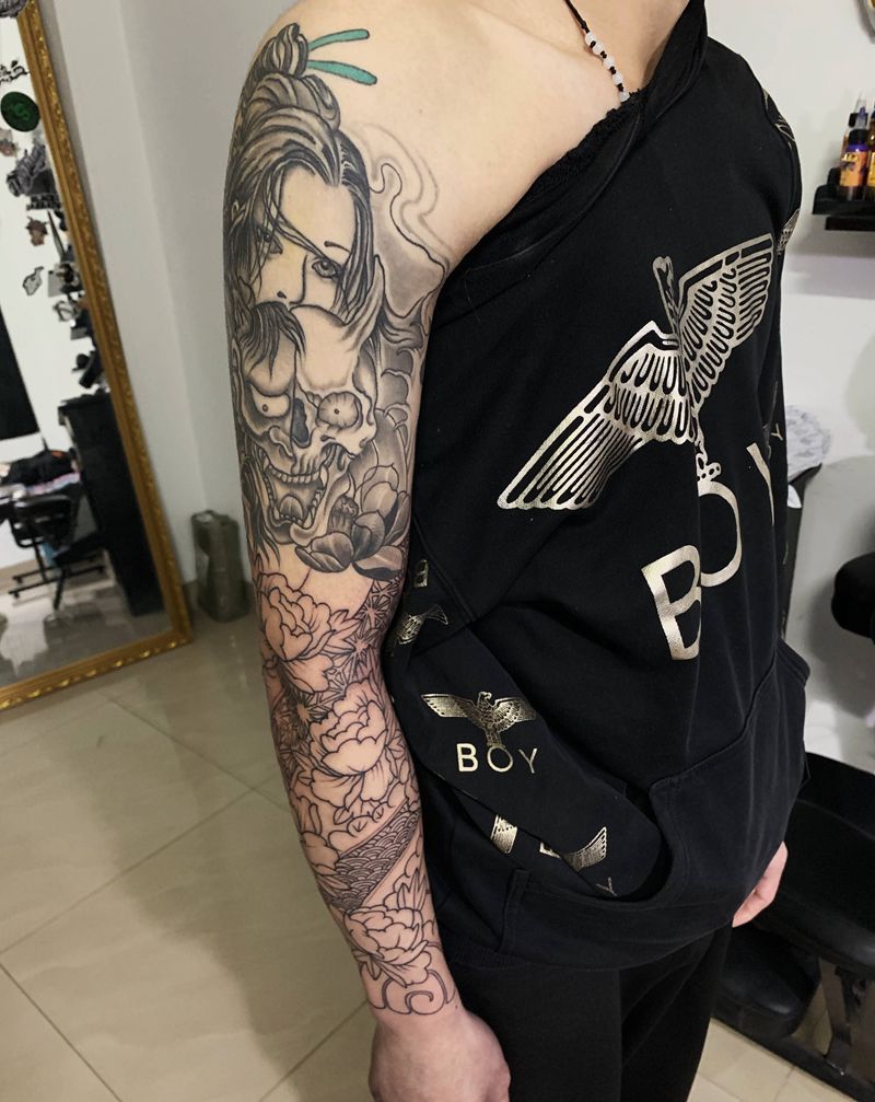 当前位置: 首页 >广东省江门市纹身店-锦绣刺青纹身工作室纹身图案>大臂恢复一年(接传统)纹身图片_手臂纹身图案