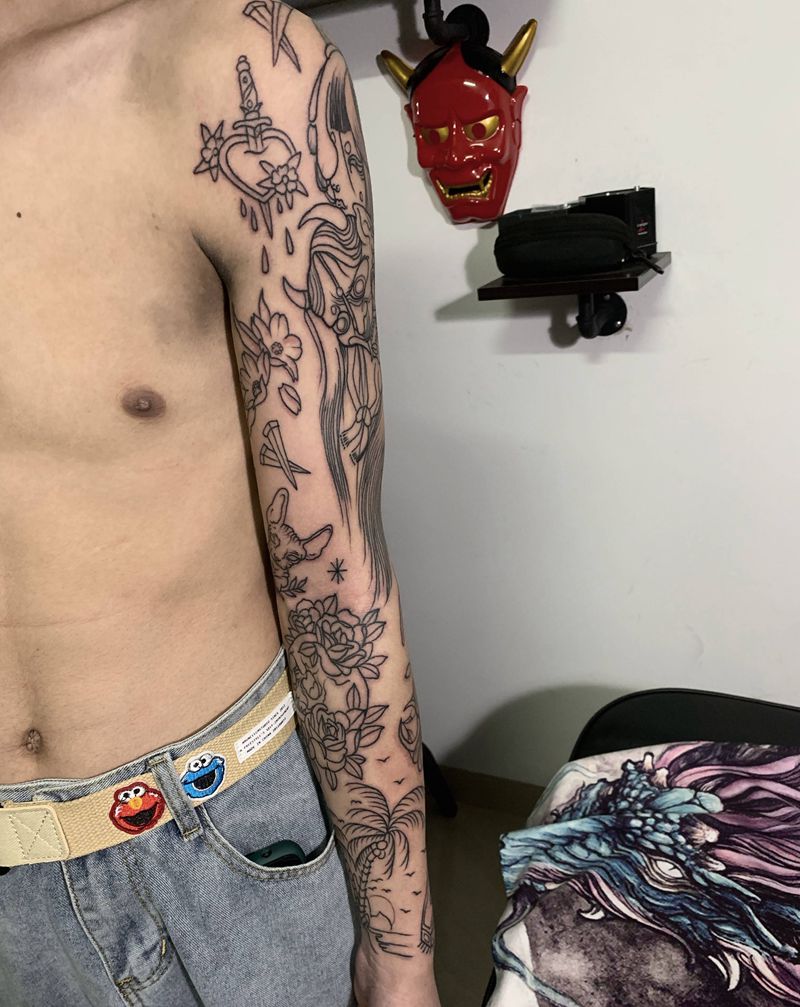 拼接花臂 (恢复中)纹身图片_手臂纹身图案