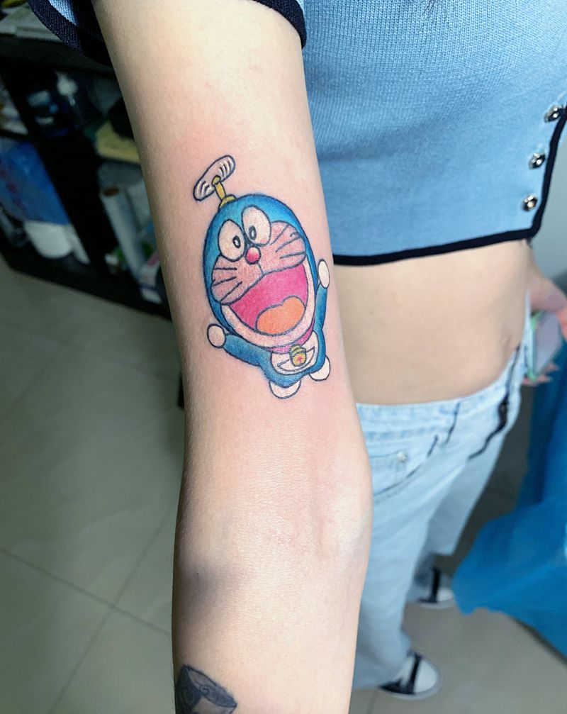 当前位置: 首页 >广东省江门市纹身店-锦绣刺青纹身工作室纹身图案>哆啦a梦纹身图片_手臂纹身图案