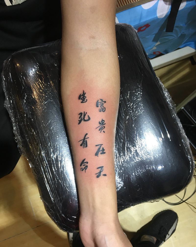 当前位置: 首页 >广东省江门市纹身店-锦绣刺青纹身工作室纹身图案>字体(原相机,无美颜)纹身图片_手臂纹身图案