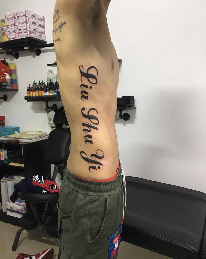 当前位置: 首页 >广东省江门市纹身店-锦绣刺青纹身工作室纹身图案>花体(原相机,无美颜)纹身图片_腰部纹身图案