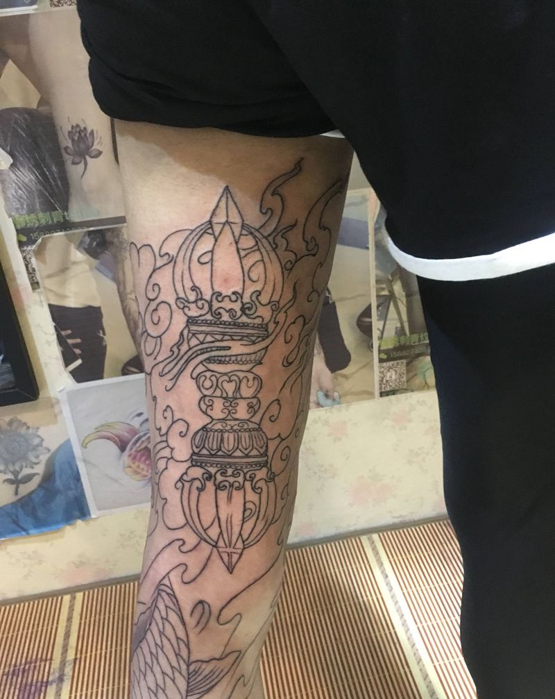 • T网红王老大花腿龙纹身图片_腿部新传统纹身图案