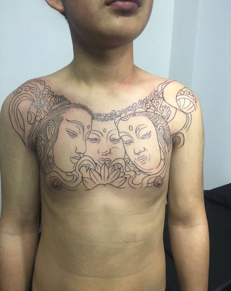 三面佛(原相机,无美颜)纹身图片_胸部纹身图案