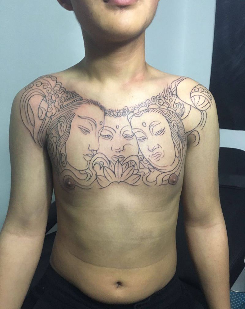 三面佛(原相机,无美颜)纹身图片_胸部纹身图案