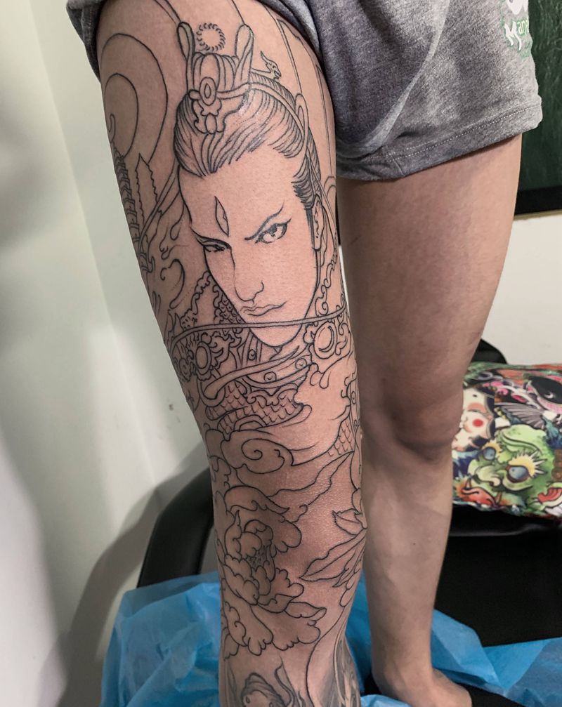 当前位置: 首页 >广东省江门市纹身店-锦绣刺青纹身工作室纹身图案>花腿纹身图片_腿部纹身图案