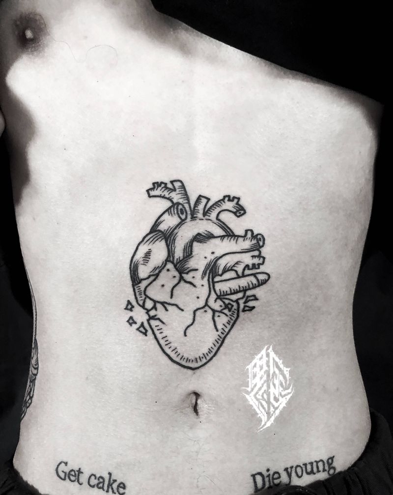 Old school线条纹身图片_腹部Old School纹身图案