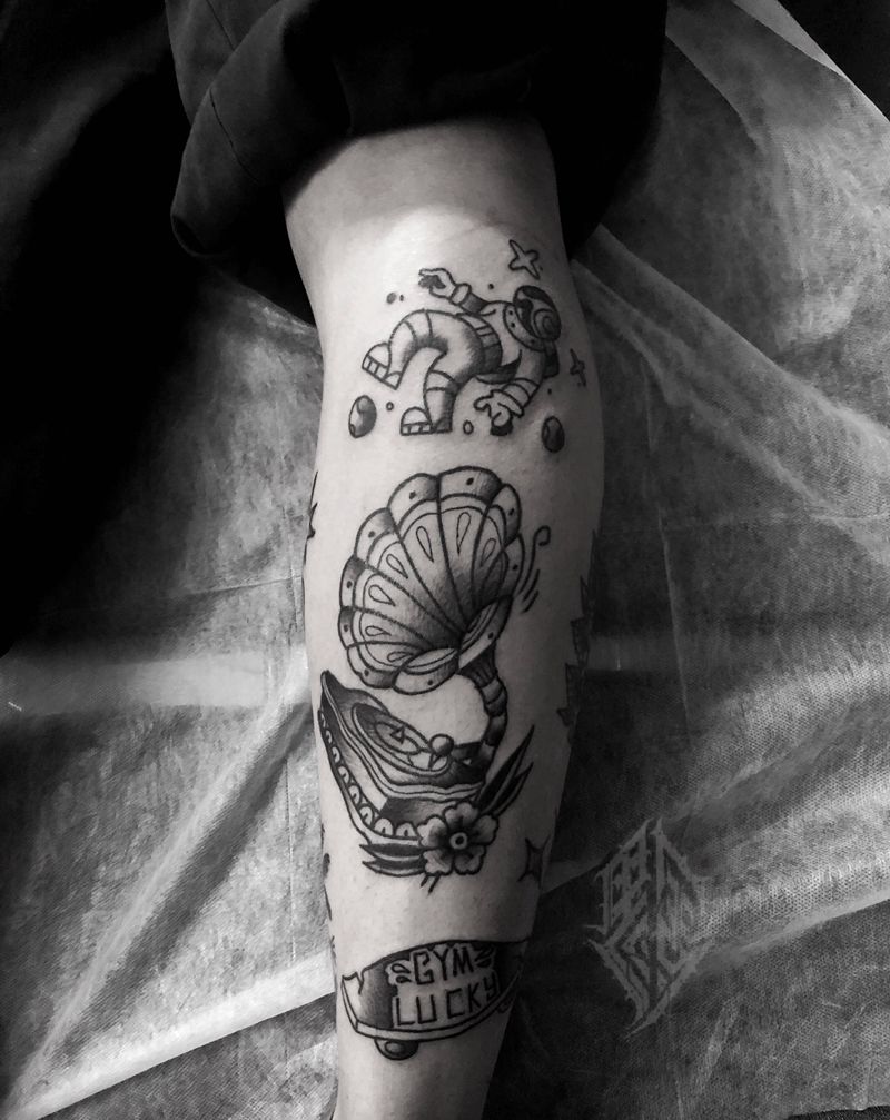 当前位置: 首页 >广东省江门市纹身店-墨舍刺青纹身图案>黑灰old school纹身图片_腿部Old School纹身图案