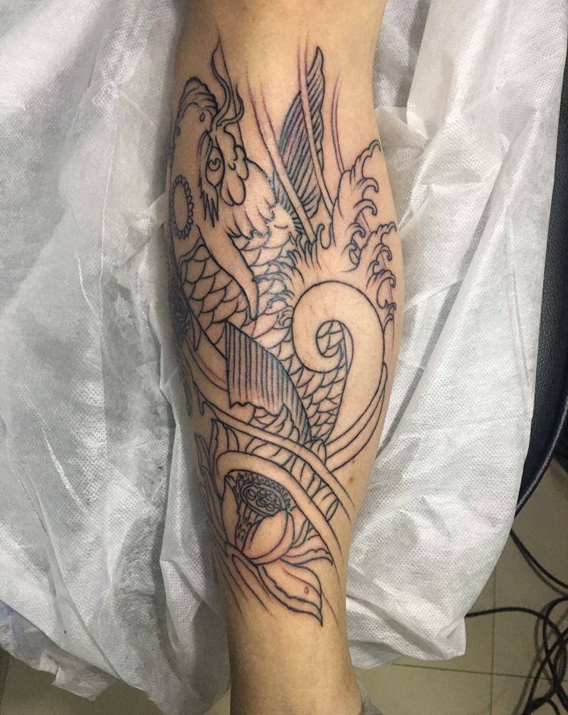 • T网红王老大花腿龙纹身图片_腿部新传统纹身图案