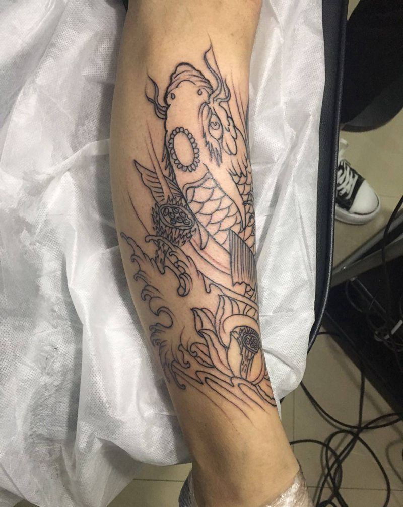 鱼(原相机,无美颜)纹身图片_腿部纹身图案