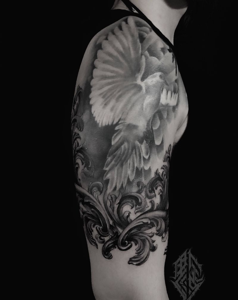• 纹身吧推荐的披肩图腾半胛纹身图案作品展示