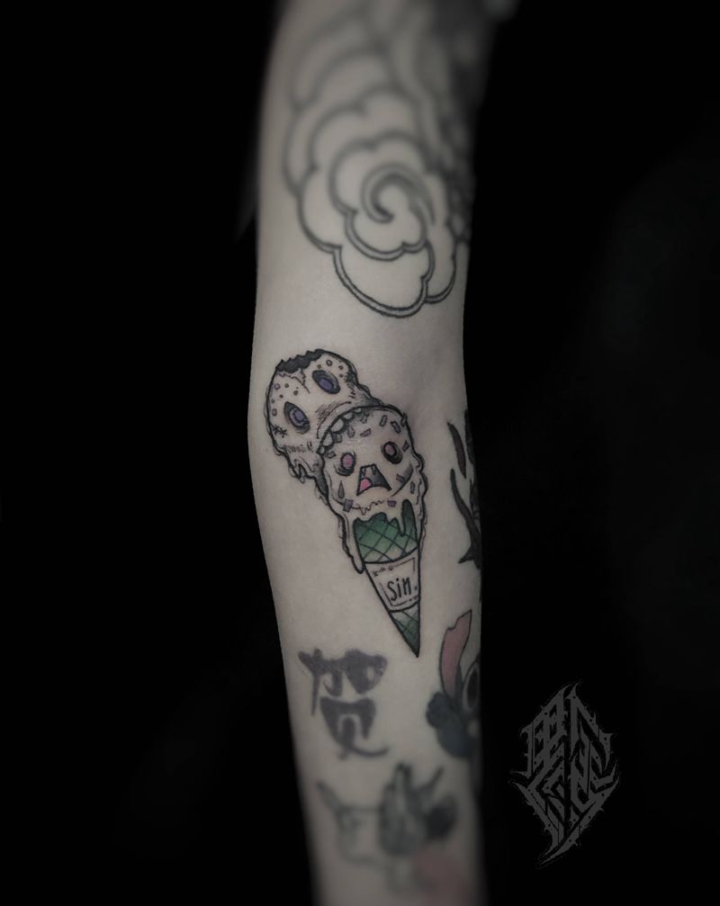 当前位置: 首页 >广东省江门市纹身店-墨舍刺青纹身图案>扭蛋机活动图纹身图片_手臂Old School纹身图案