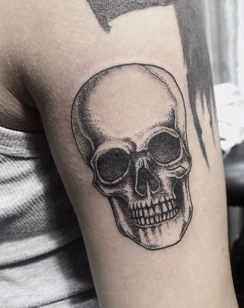 小骷髅头纹身图片_手臂手部点刺New School纹身图案