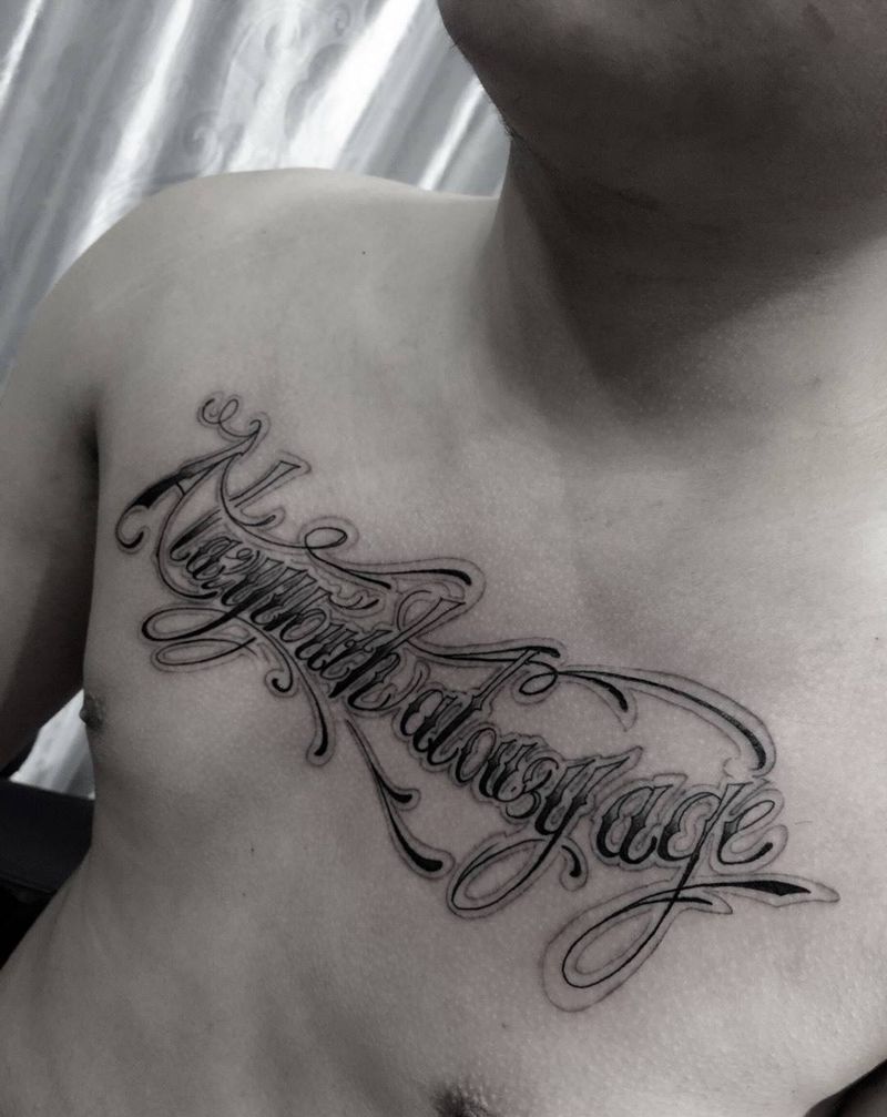 当前位置: 首页 >广东省湛江市纹身店-纹心刺青纹身图案>花体英文纹身图片_英文花胸字符静物传统欧美胸部成品纹身图案