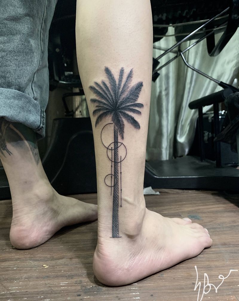 当前位置: 首页 >广东省湛江市纹身店-纹心刺青纹身图案>陈冠希同款纹身图片_脚部腿部几何新传统小腿纹身图案
