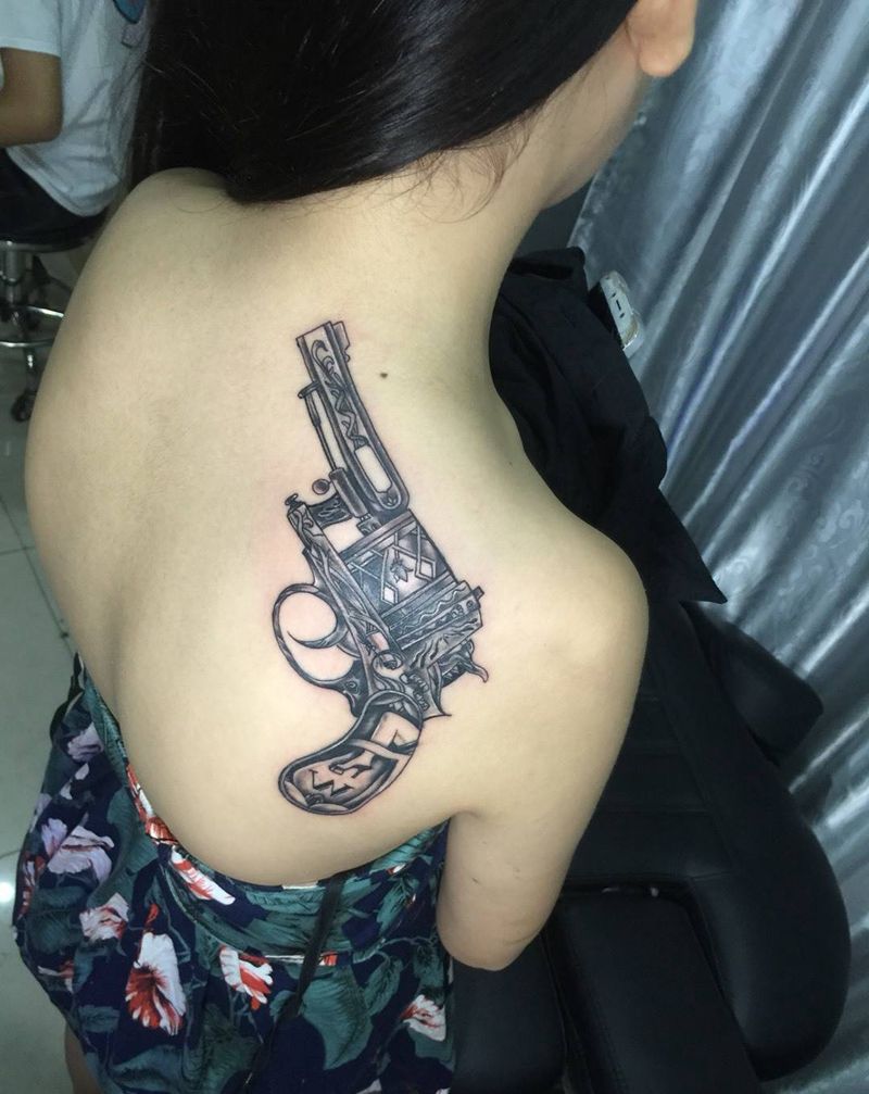 当前位置: 首页 >广东省湛江市纹身店-纹心刺青纹身图案>枪纹身图片_情侣欧美清新背部纹身图案