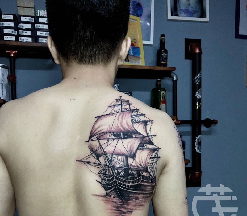 黑灰满背纹身图案