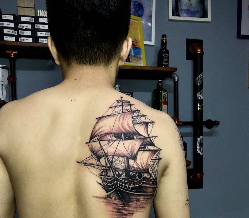黑灰满背纹身图案