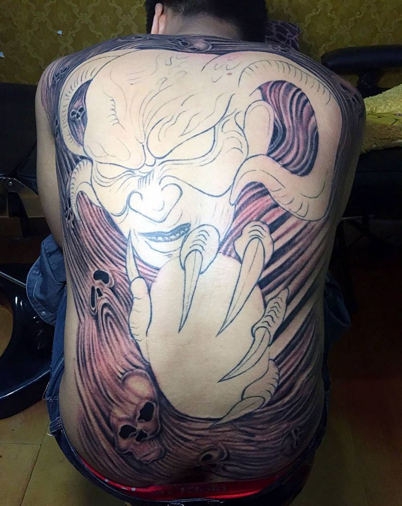 当前位置: 首页 >广东省江门市纹身店-茂.刺青纹身图案>魔纹身图片_成品背部传统鬼神原创纹身图案