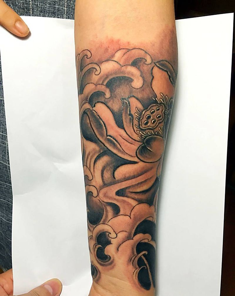 当前位置: 首页 >广东省江门市纹身店-茂.刺青纹身图案>荷花包小臂纹身图片_成品手部传统静物纹身图案