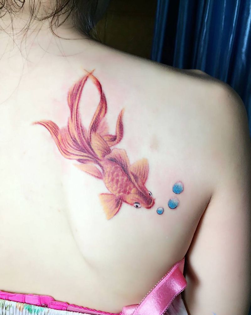 当前位置: 首页 >广东省江门市纹身店-茂.刺青纹身图案>金鱼纹身图片_成品背部写实动物纹身图案
