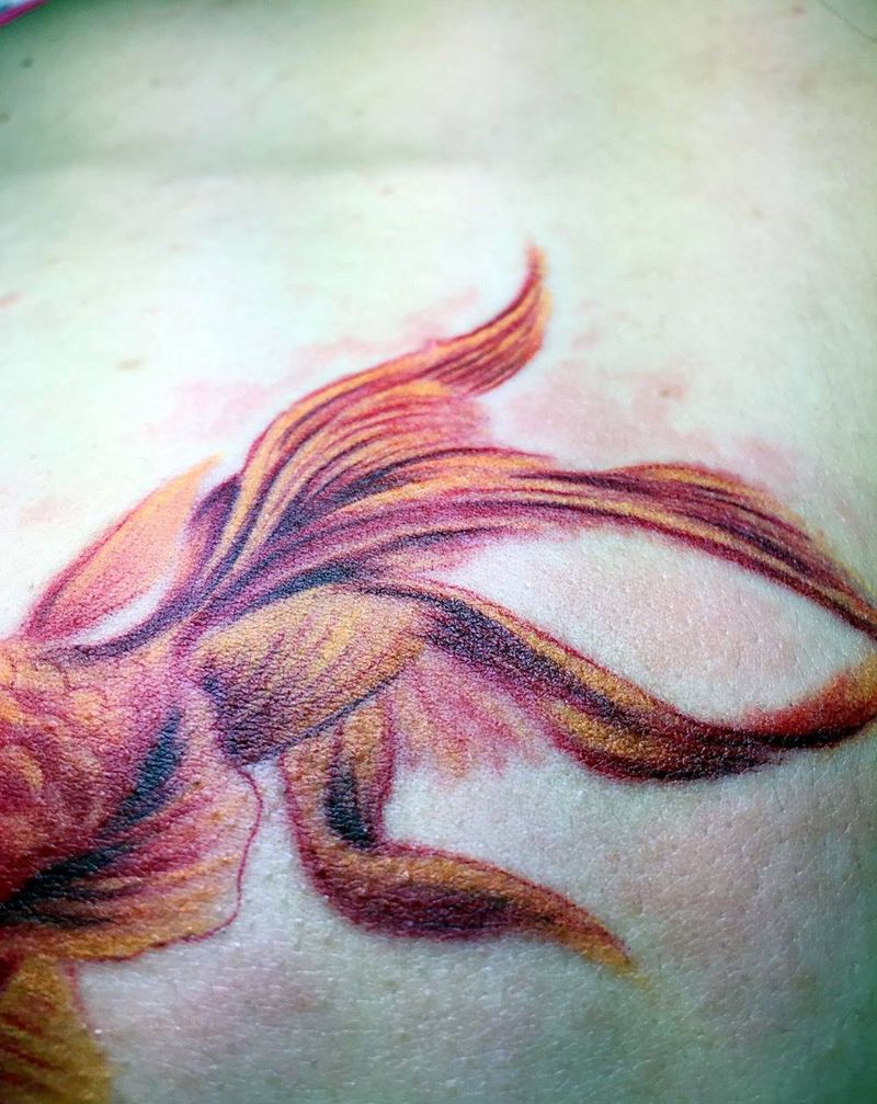 当前位置: 首页 >广东省江门市纹身店-茂.刺青纹身图案>金鱼纹身图片_成品背部写实动物纹身图案