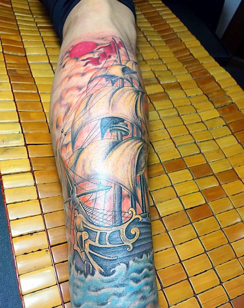 当前位置: 首页 >广东省江门市纹身店-茂.刺青纹身图案>一帆风顺纹身图片_成品腿部欧美静物纹身图案