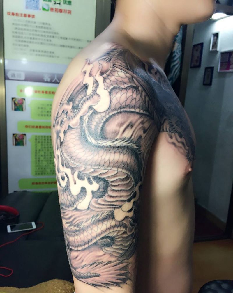 过肩龙纹身图片_手稿成品手臂传统动物纹身图案