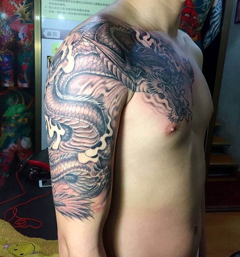 过肩龙纹身图片_手稿成品手臂传统动物纹身图案