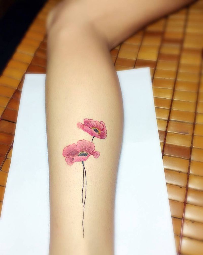 罂粟,死亡之花纹身图片_成品脚部清新植物纹身图案