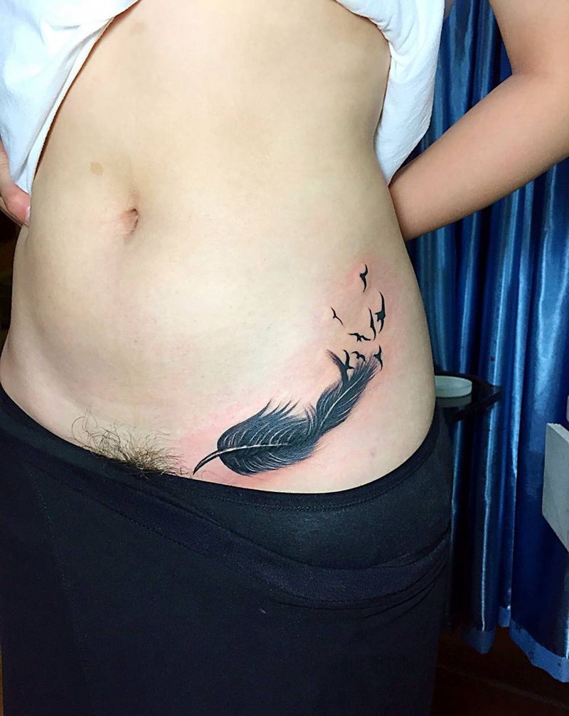 • T关于私处得爱!纹身图片_成品腹部清新字符图腾纹身图案