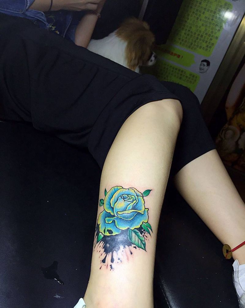 • T网红王老大花腿龙纹身图片_腿部新传统纹身图案