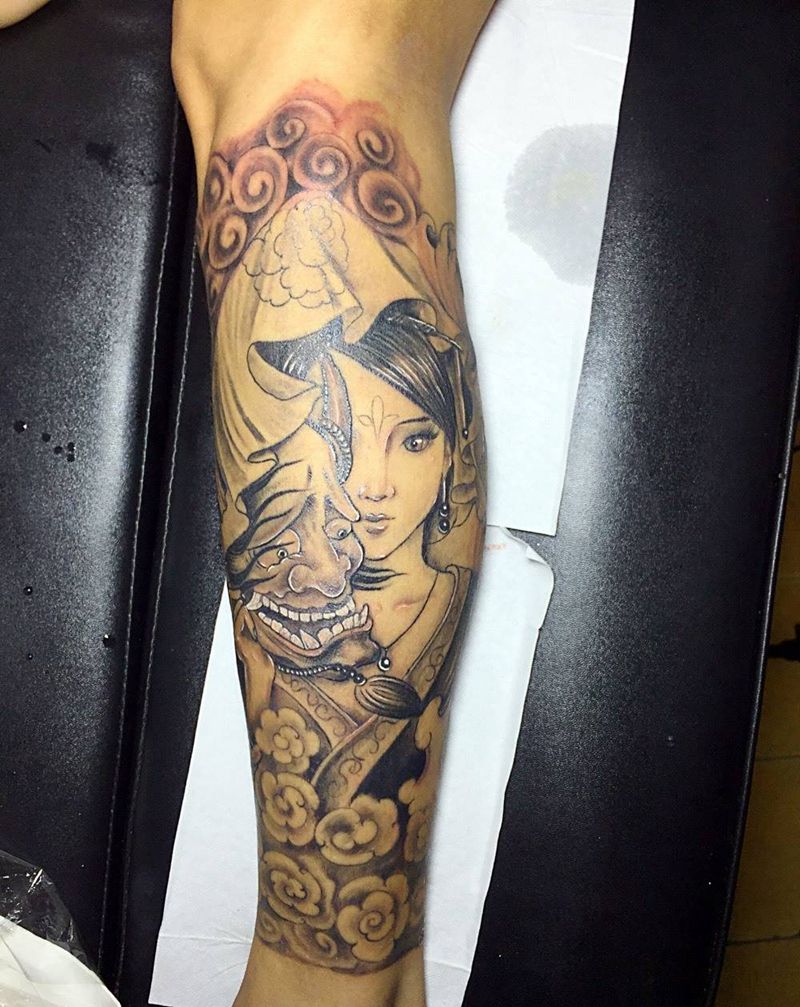 • T网红王老大花腿龙纹身图片_腿部新传统纹身图案