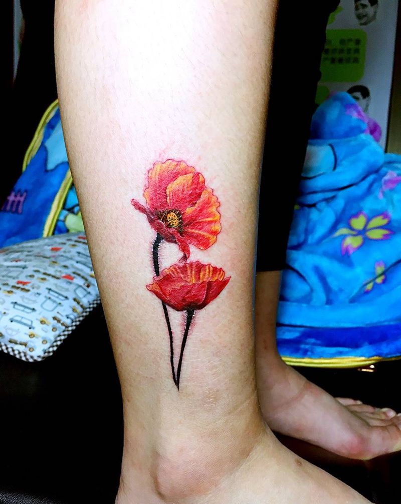 • T网红王老大花腿龙纹身图片_腿部新传统纹身图案