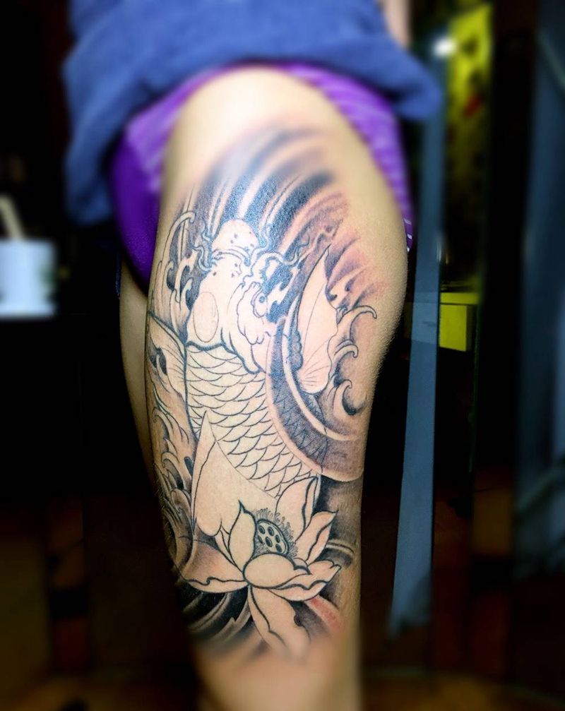 大腿鲤鱼,纹身图片_成品腿部传统原创纹身图案