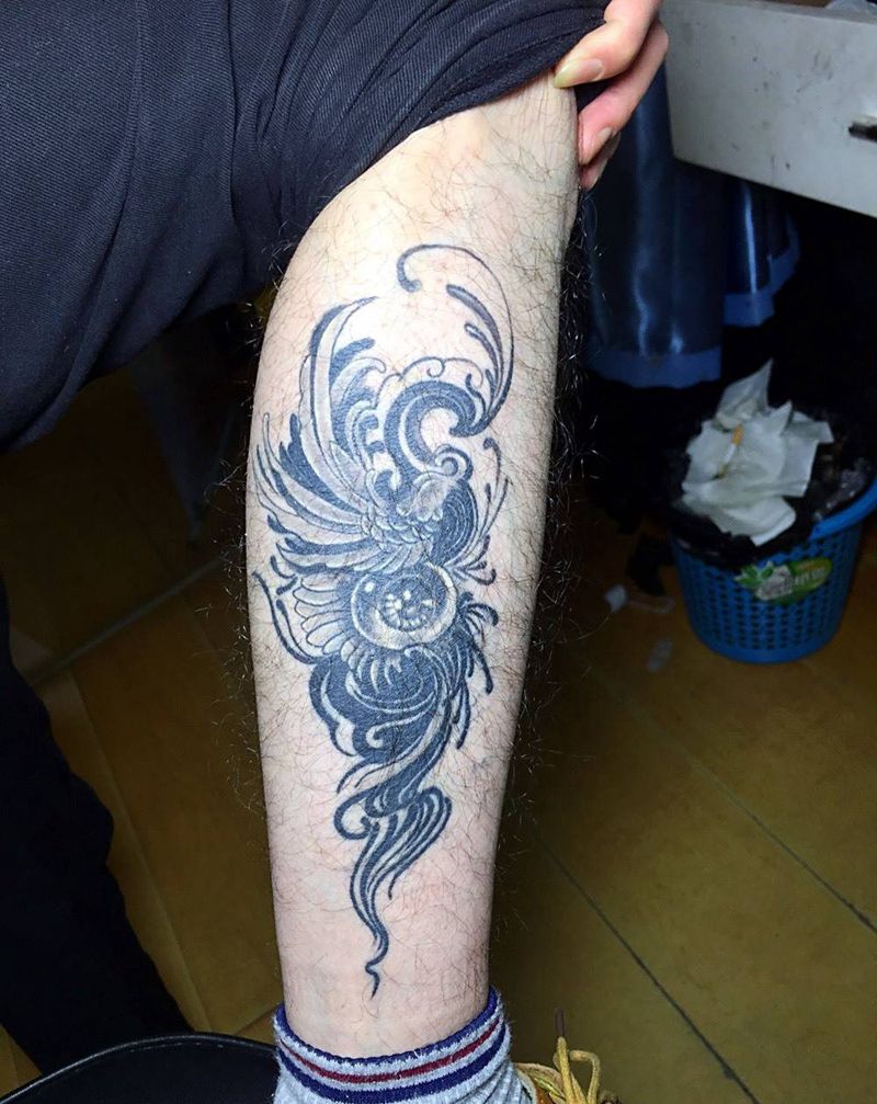 • T网红王老大花腿龙纹身图片_腿部新传统纹身图案