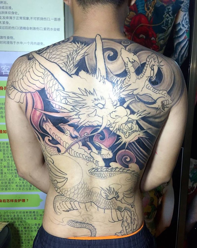 当前位置: 首页 >广东省江门市纹身店-茂.刺青纹身图案>满背龙纹身图片_手稿背部传统动物原创纹身图案