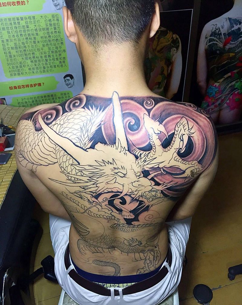 当前位置: 首页 >广东省江门市纹身店-茂.刺青纹身图案>满背龙纹身图片_手稿背部传统动物原创纹身图案