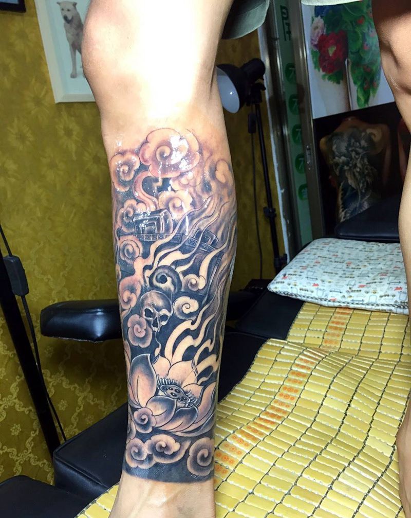 • T网红王老大花腿龙纹身图片_腿部新传统纹身图案