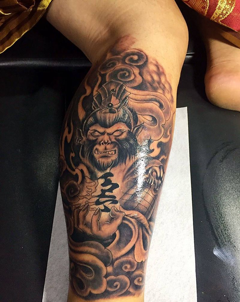 • T网红王老大花腿龙纹身图片_腿部新传统纹身图案