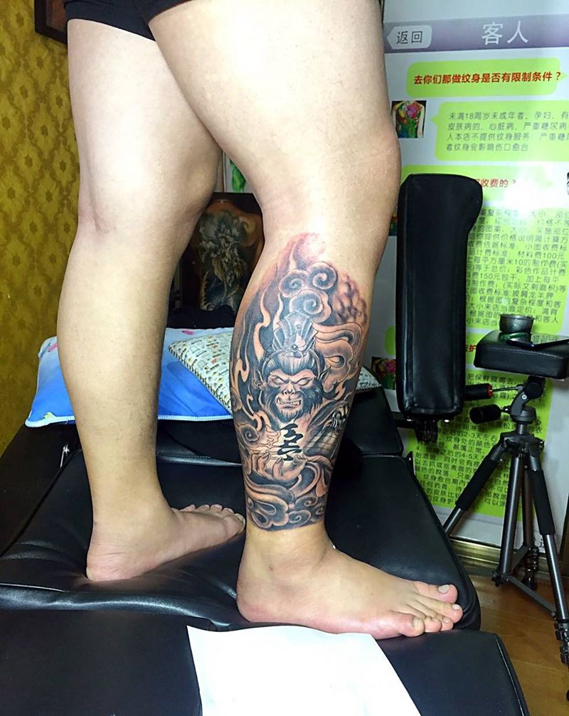 • T网红王老大花腿龙纹身图片_腿部新传统纹身图案