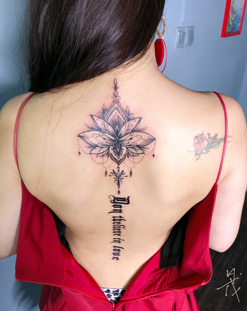 背部莲花印纹身图片_背部纹身图案