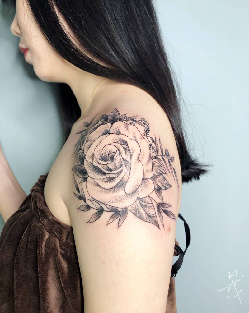 • 女性大花胸纹身_43张霸气漂亮的女性大花胸纹身图案作品